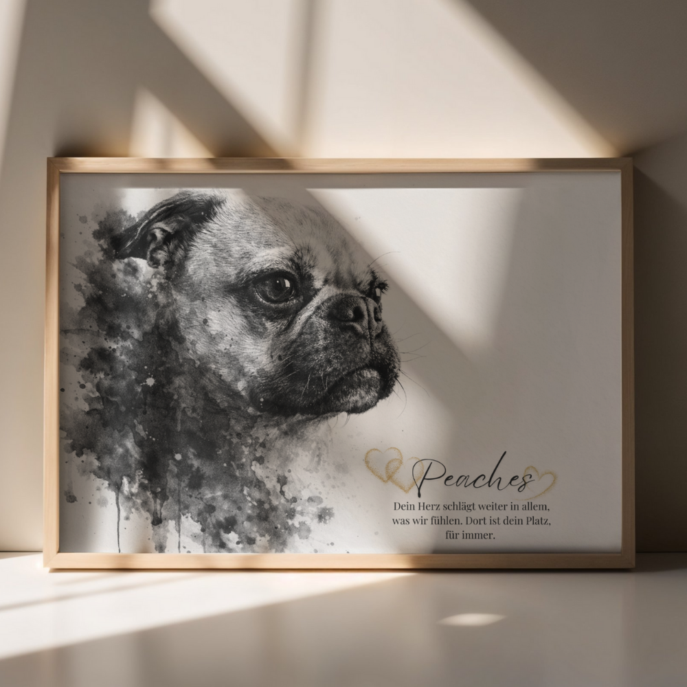 Herz & Andenken ist ein Ort für diese besondere Liebe. Hier entstehen personalisierte Tierporträts für verstorbene Haustiere – als liebevolle Erinnerung, weil sie mehr sind als nur Tiere: sie sind Freunde, sie sind Familie.