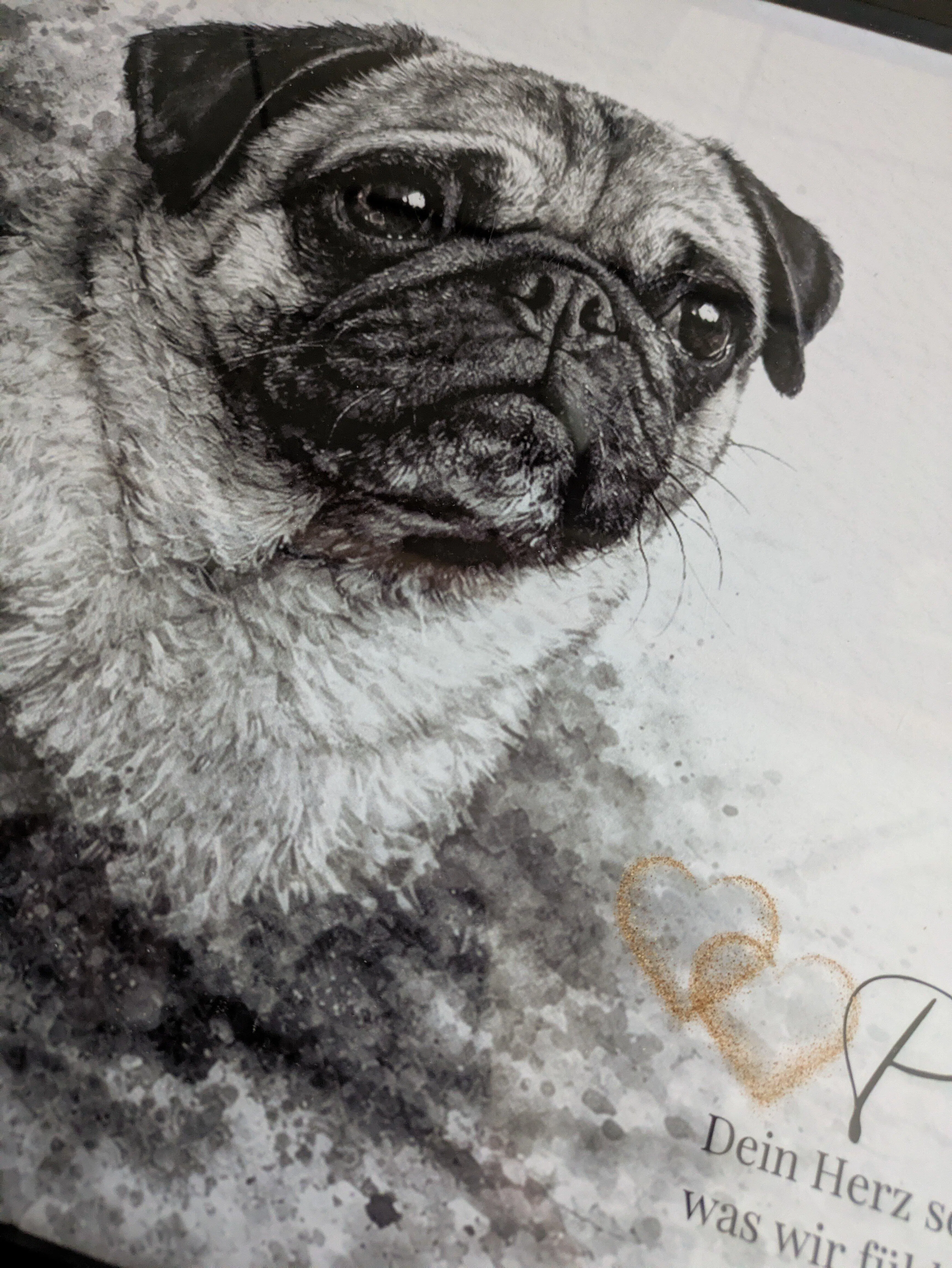 Wir möchten uns gerne für das wunderschöne Erinnerungsbild unseres Hundes bedanken. Er war ein besonderer Hund, ein Familienmitglied und hat deshalb einen besonderen Platz verdient in unserem weiteren Leben. Durch das Erinnerungsbild wurde genau dieser Platz geschaffen und das mit so viel Liebe, die man sehen kann. Zauberhaften Details, liebevolle Gestaltung und darüberhinaus professionell gearbeitet und einfach wunderschön. Wir empfehlen Herz und Andenken sehr gerne. Toller Service, liebevoll verpackt durch eine so freundliche und empathische und begabte Künstlerin. Wir waren zu Tränen gerührt als wir es bekommen haben. Unbezahlbar! Und doch ein so fairer Preis. Definitiv Empfehlung. Vielen Dank.